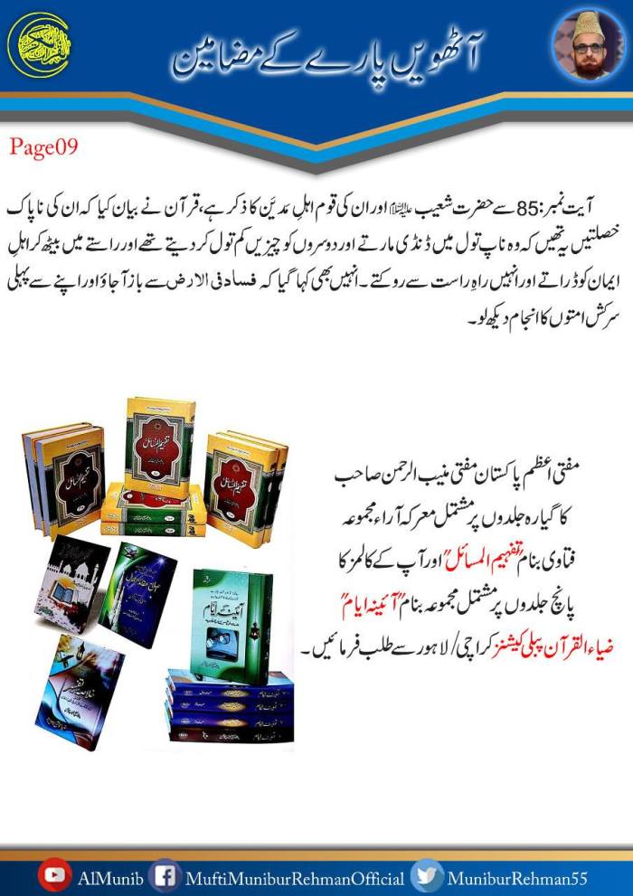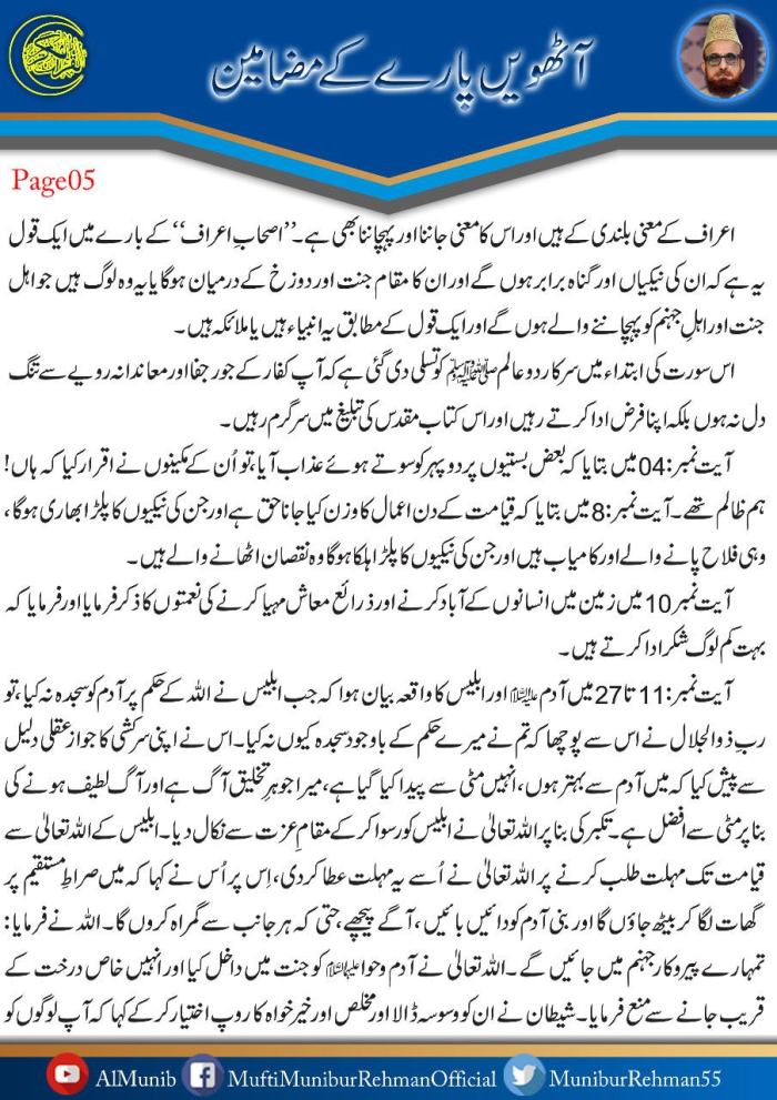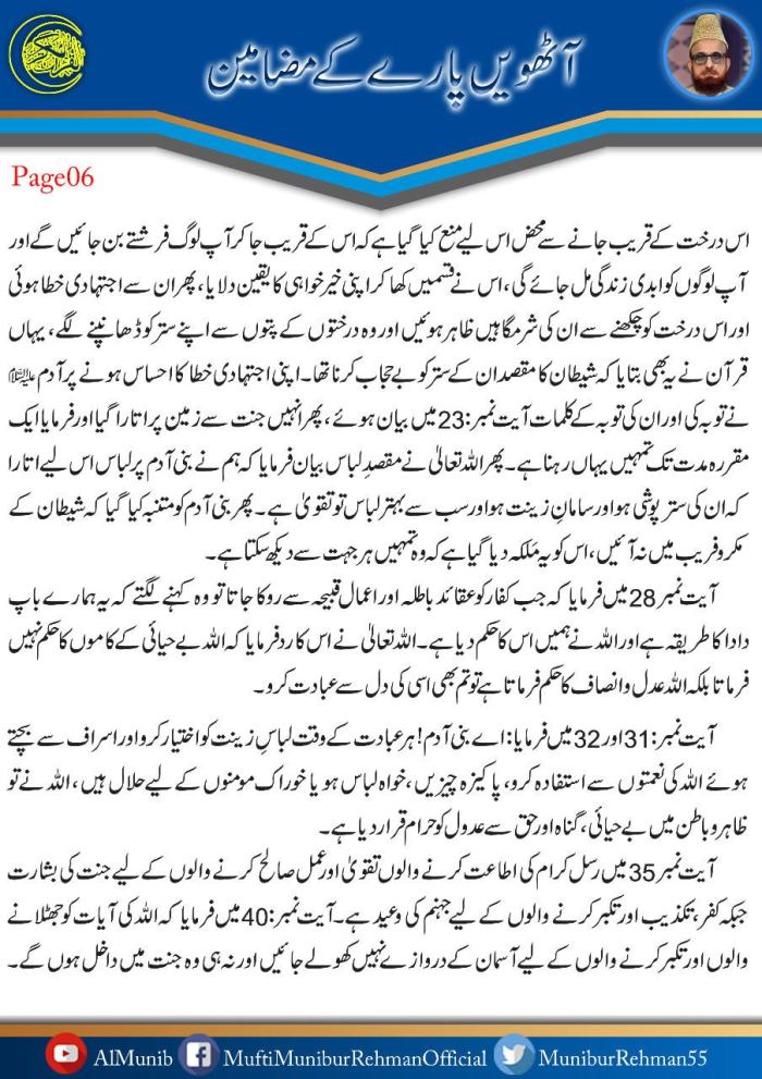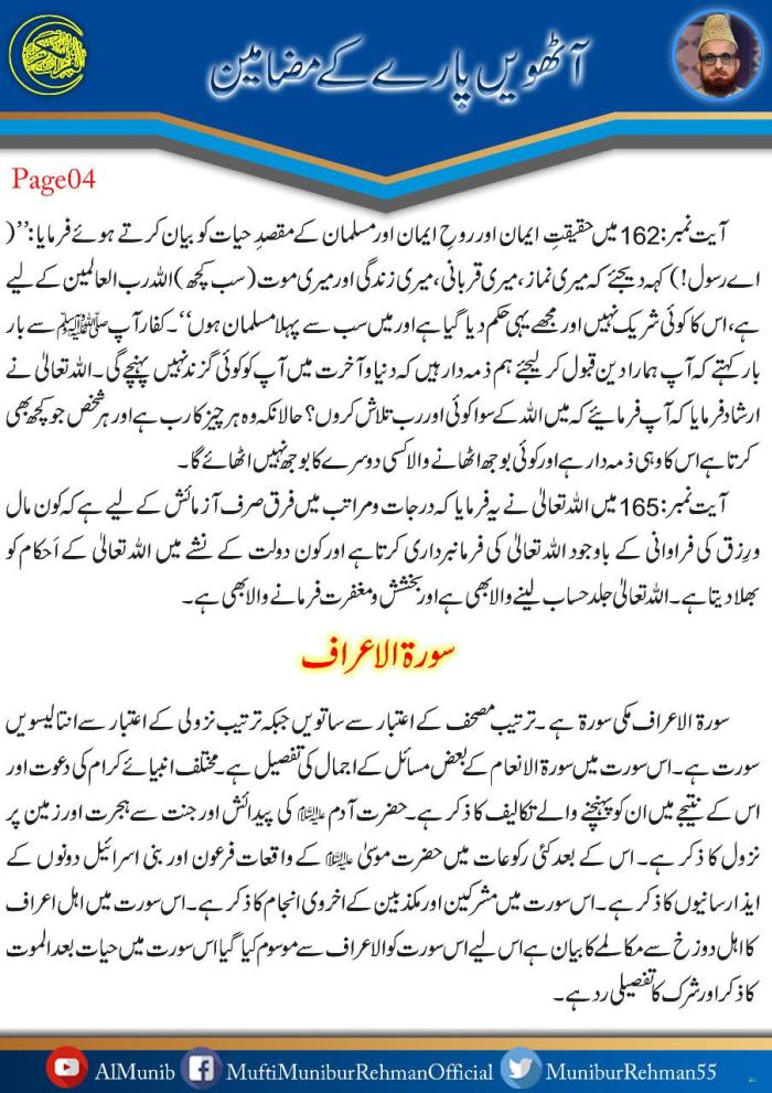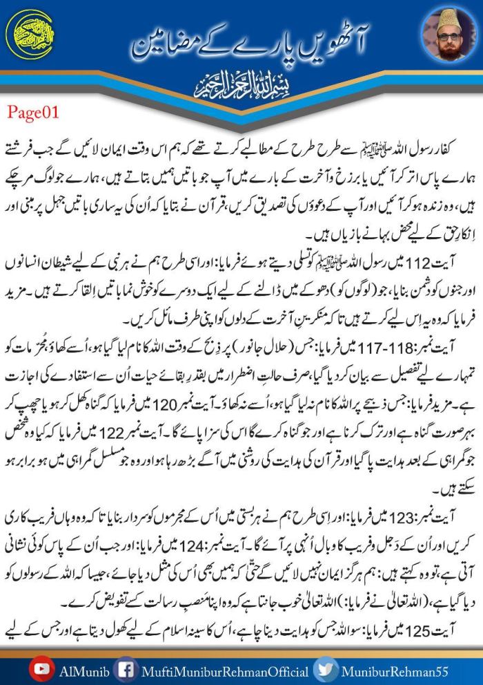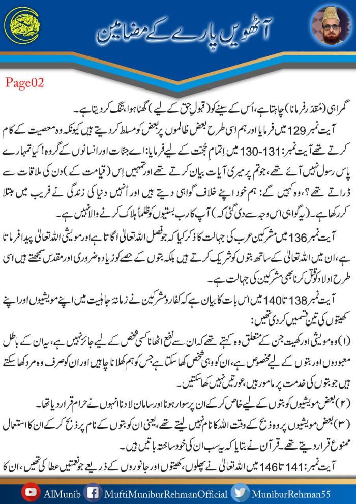 قرآن الحکیم کے آٹھویں پارے کے مضامین