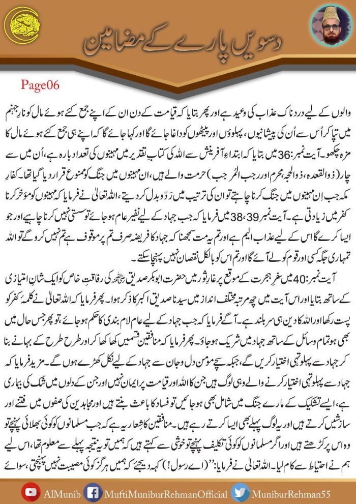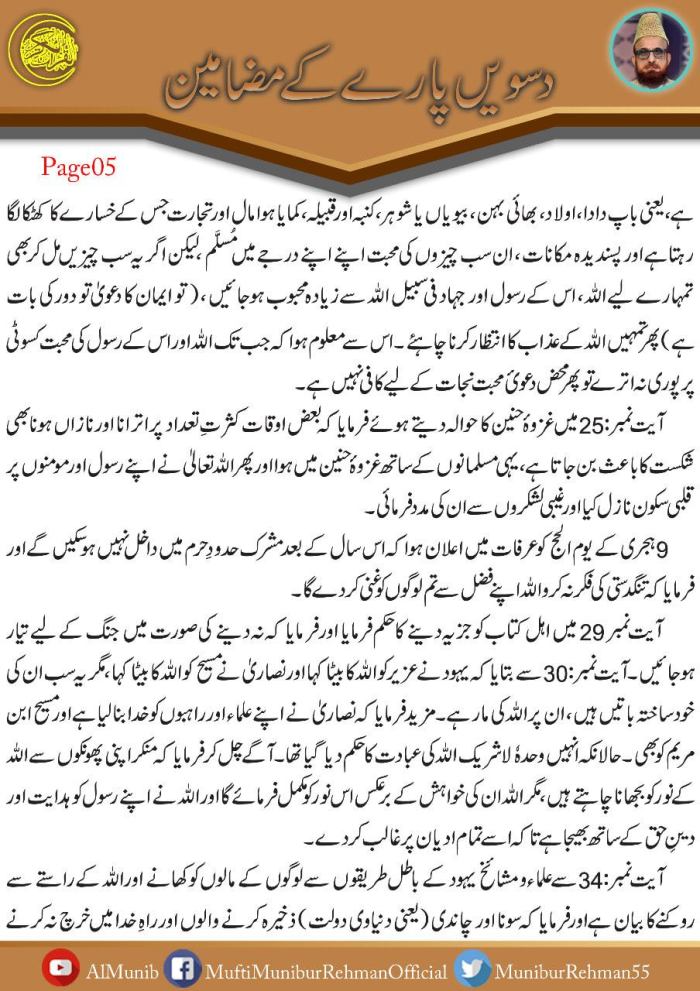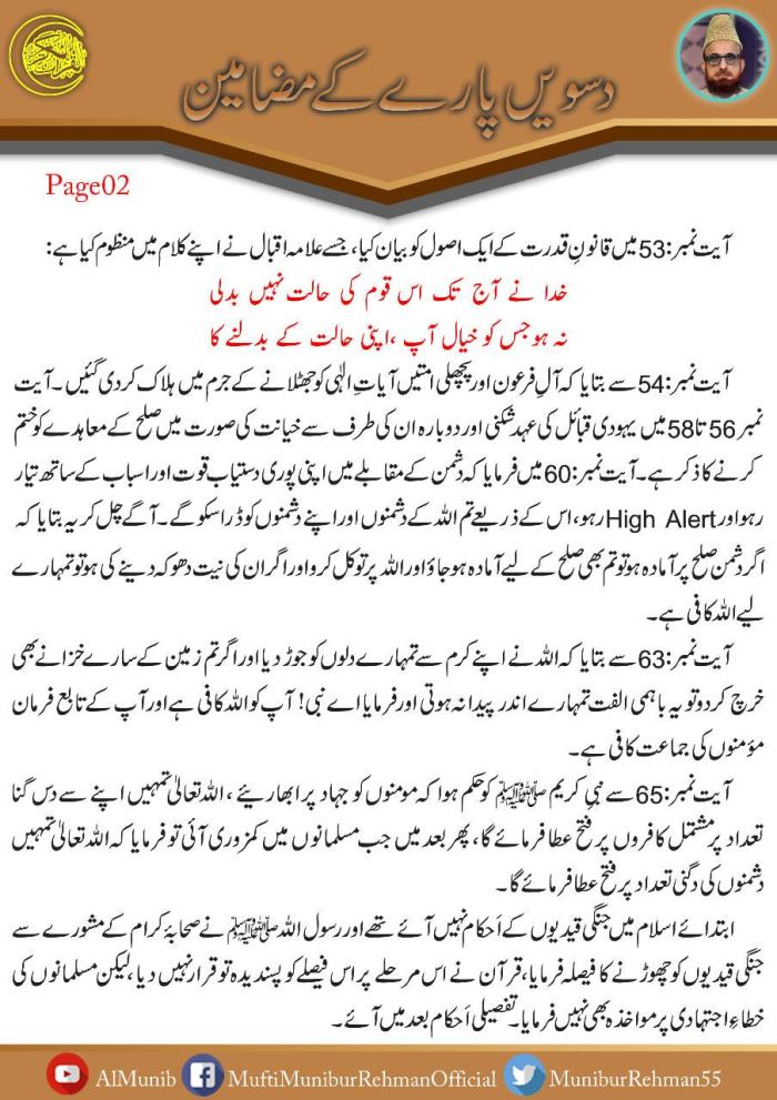قرآن الحکیم کے دسویں 10 پارے کے مضامین