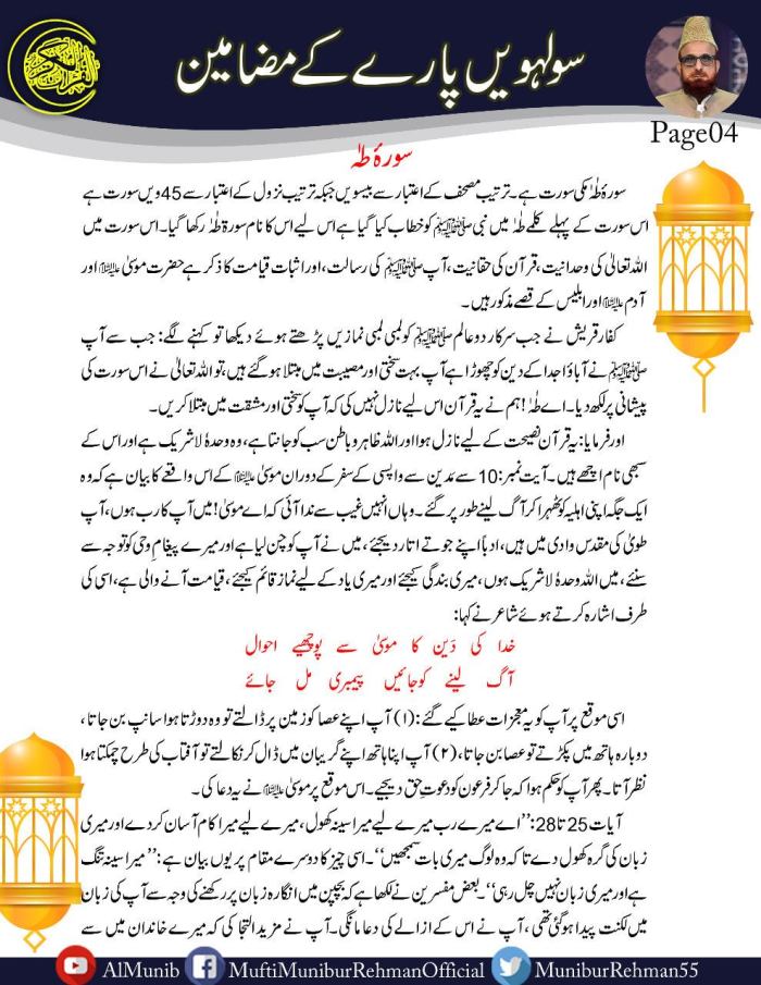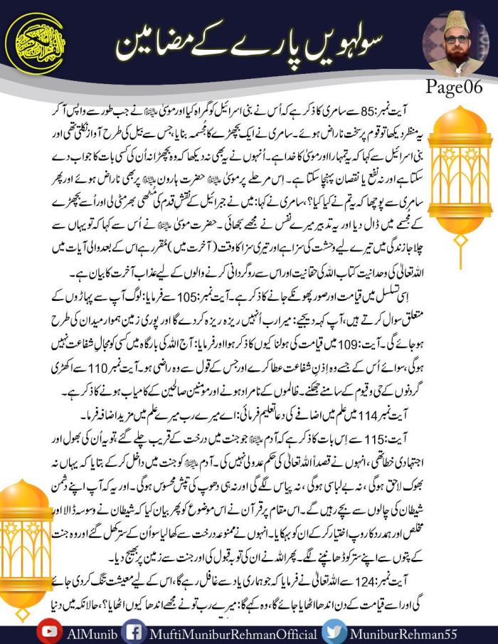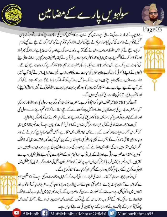 قرآن الحکیم کے سولہویں 16 پارے کے مضامین