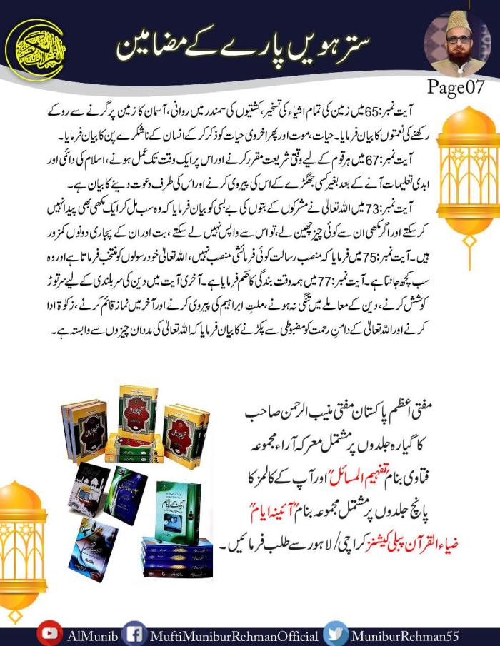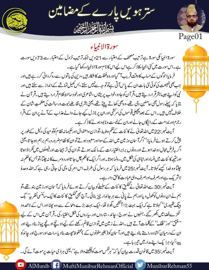 قرآن الحکیم کے سترہویں 17 پارے کے مضامین