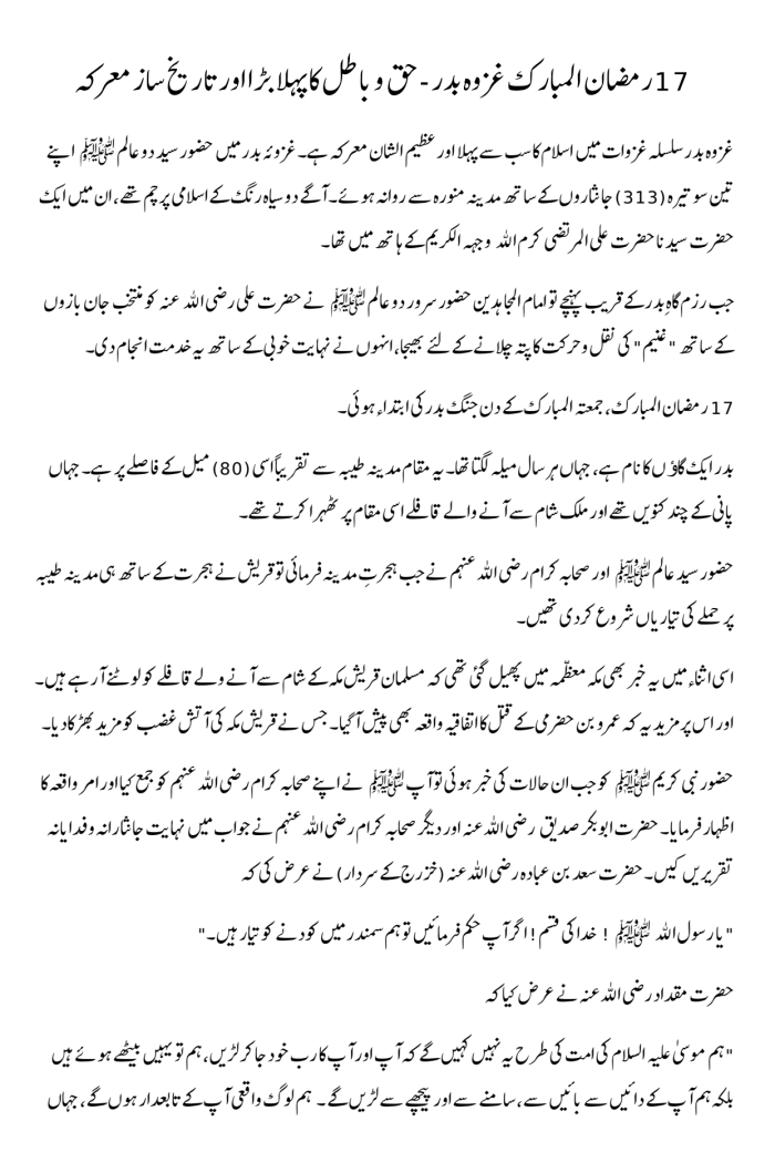 سترہ (17) رمضان المبارک غزوہ بدر – حق و باطل کا پہلا بڑا اور تاریخ ساز معرکہ