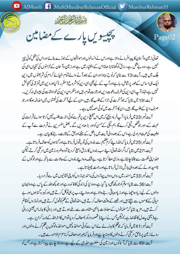 قرآن الحکیم کے پچیسویں 25 پارے کے مضامین