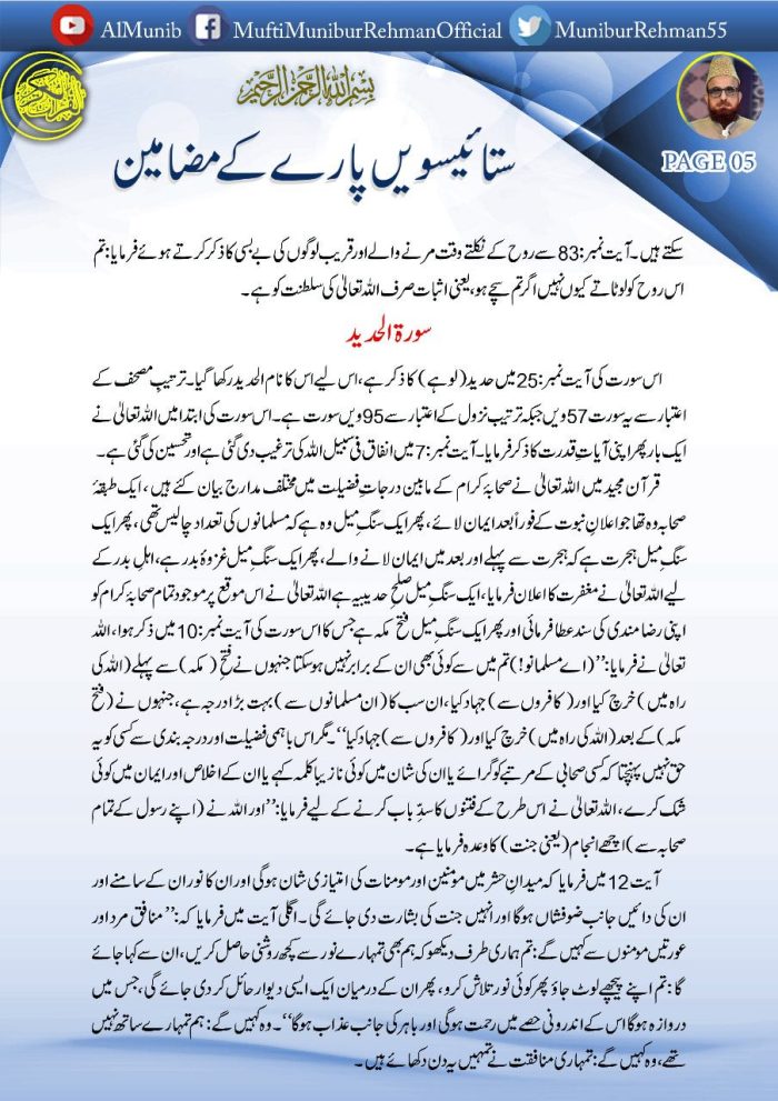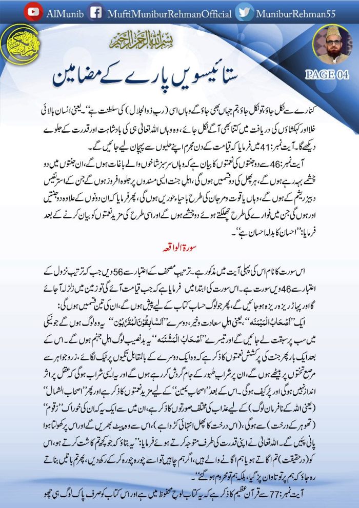 قرآن الحکیم کے ستائیسویں 27 پارے کے مضامین