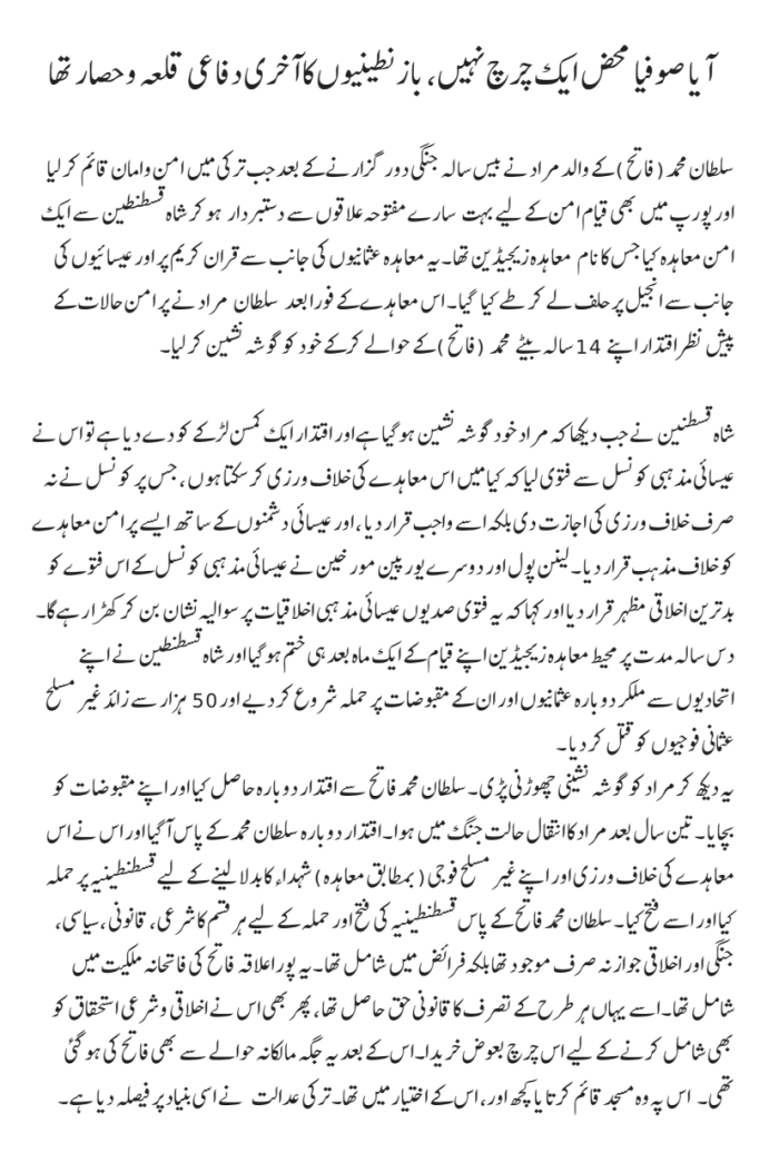 آیا صوفیا محض ایک چرچ نہیں، بازنطینیوں کا آخری دفاعی قلعہ وحصار تھا