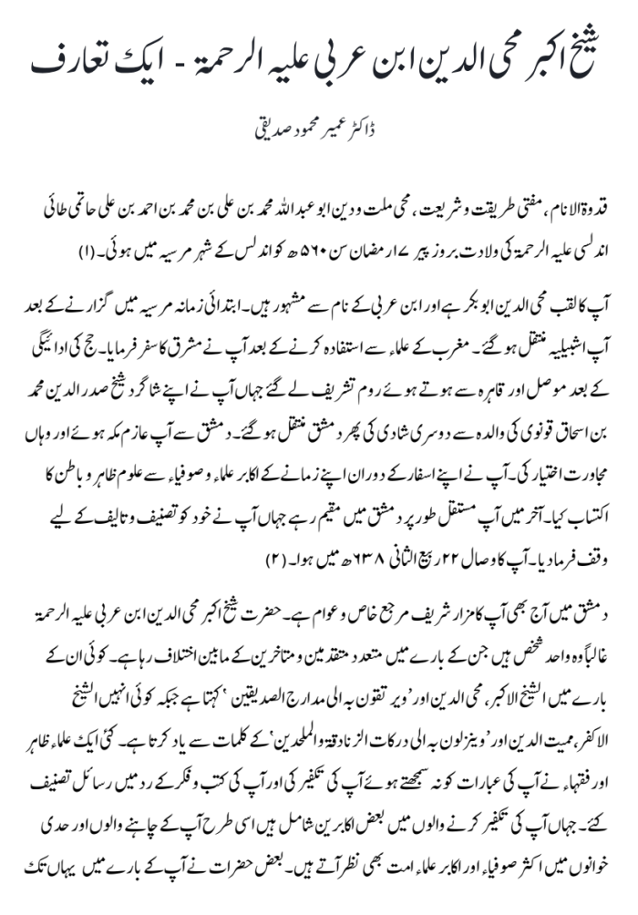 شیخ اکبر محی الدین ابن عربی علیہ الرحمۃ – ایک تعارف