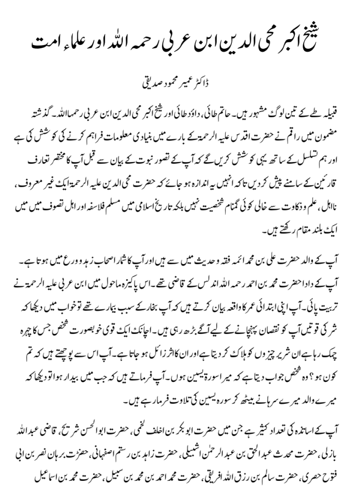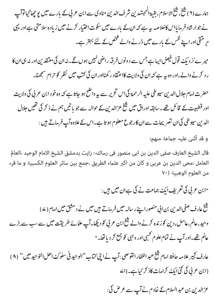 شیخ اکبر محی الدین ابن عربی رحمہ اللہ اور آپ کے معتقد علماء امت