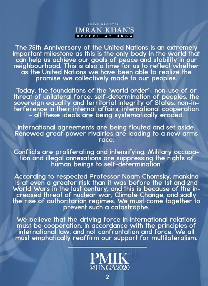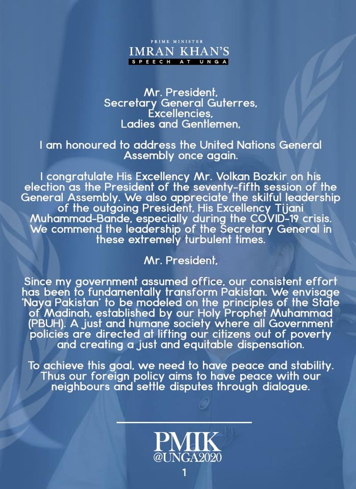 PM Imran Khan’s address to the 75th session of the UNGA – 25 September 2020