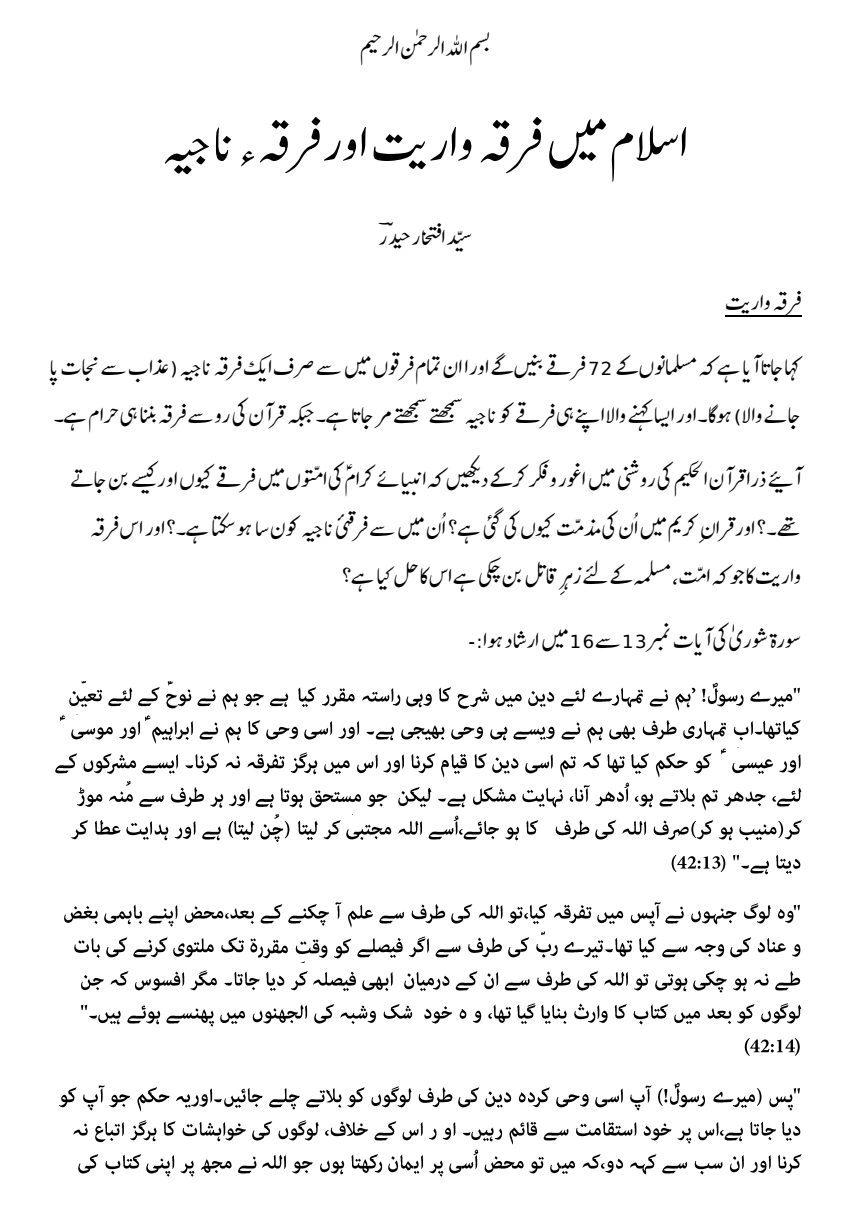 اسلام میں فرقہ واریت اور فرقہء ناجیہ