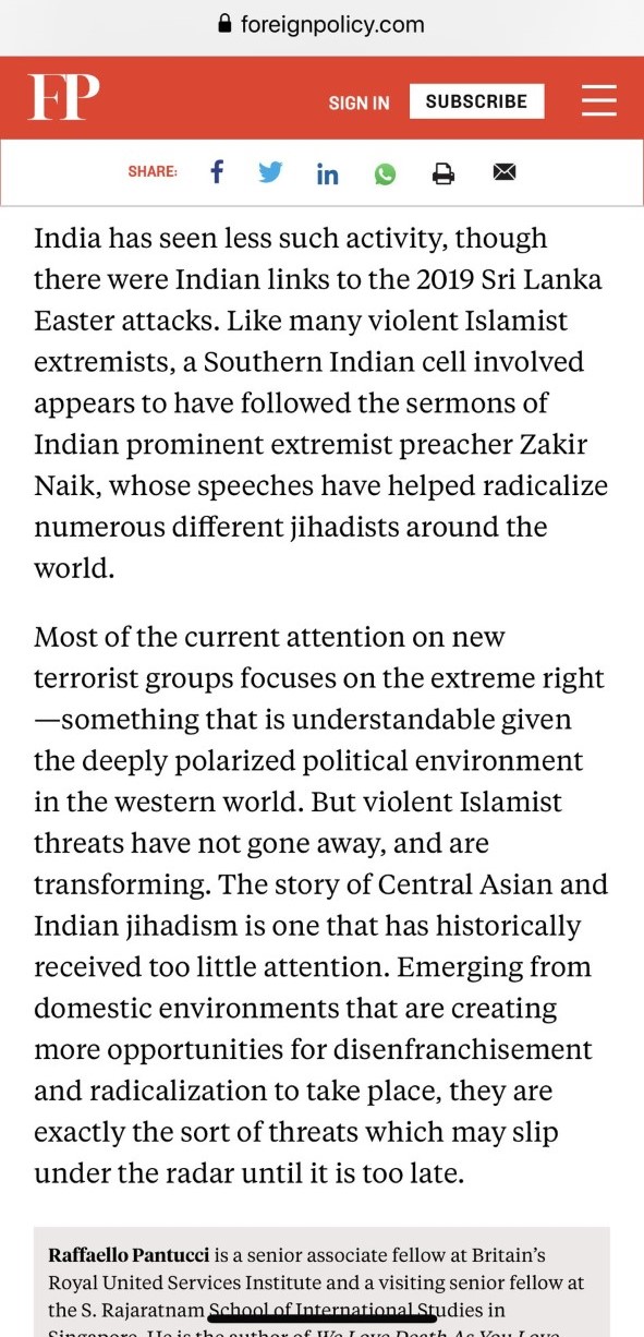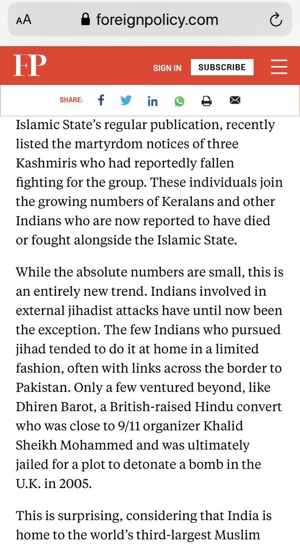 بھارت داعش کے ذریعے مختلف ممالک میں دہشت گردی کر رہا ہے۔ امریکی جریدہ
