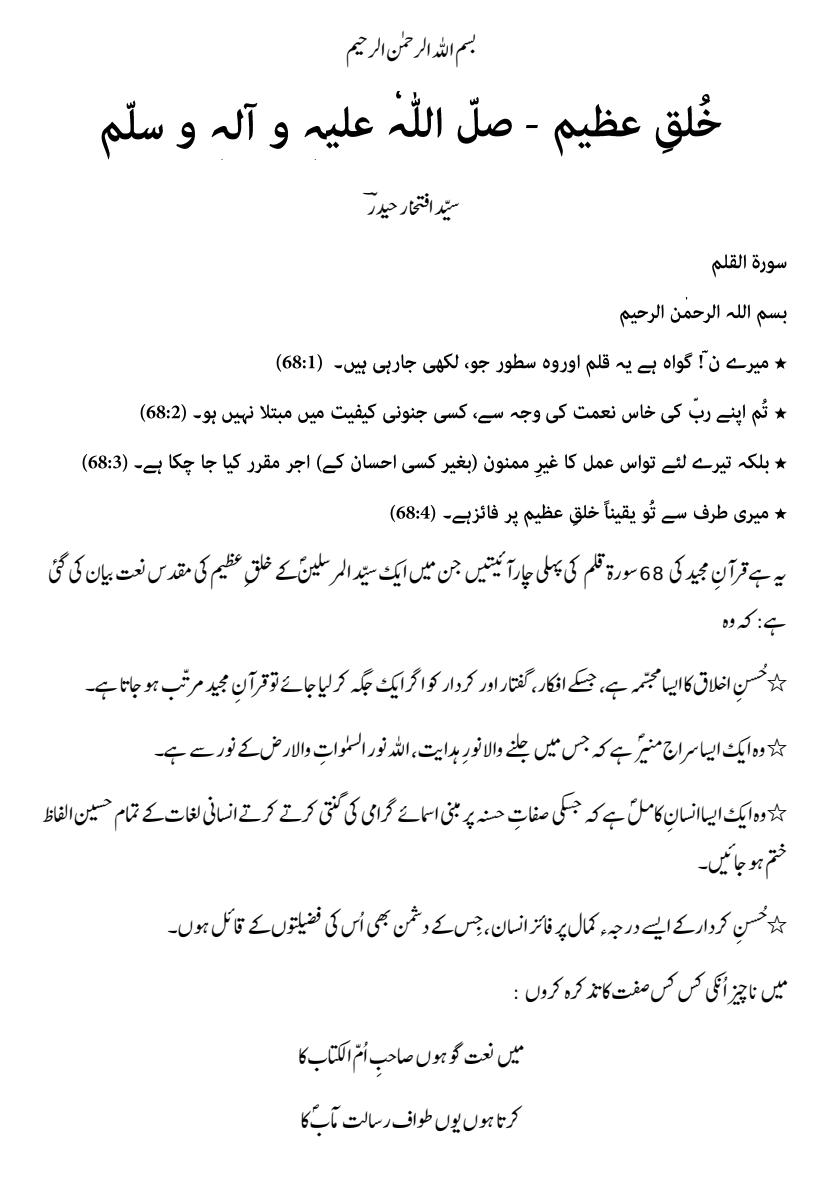 خُلقِ عظیم – صلّ اللّٰہٗ علیہٖ و آلہٖ و سلّم