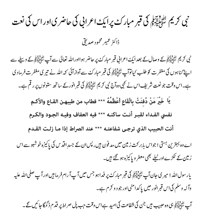 نبی کریم ﷺ کی قبر مبارک پر ایک اعرابی کی حاضری اور اس کی نعت