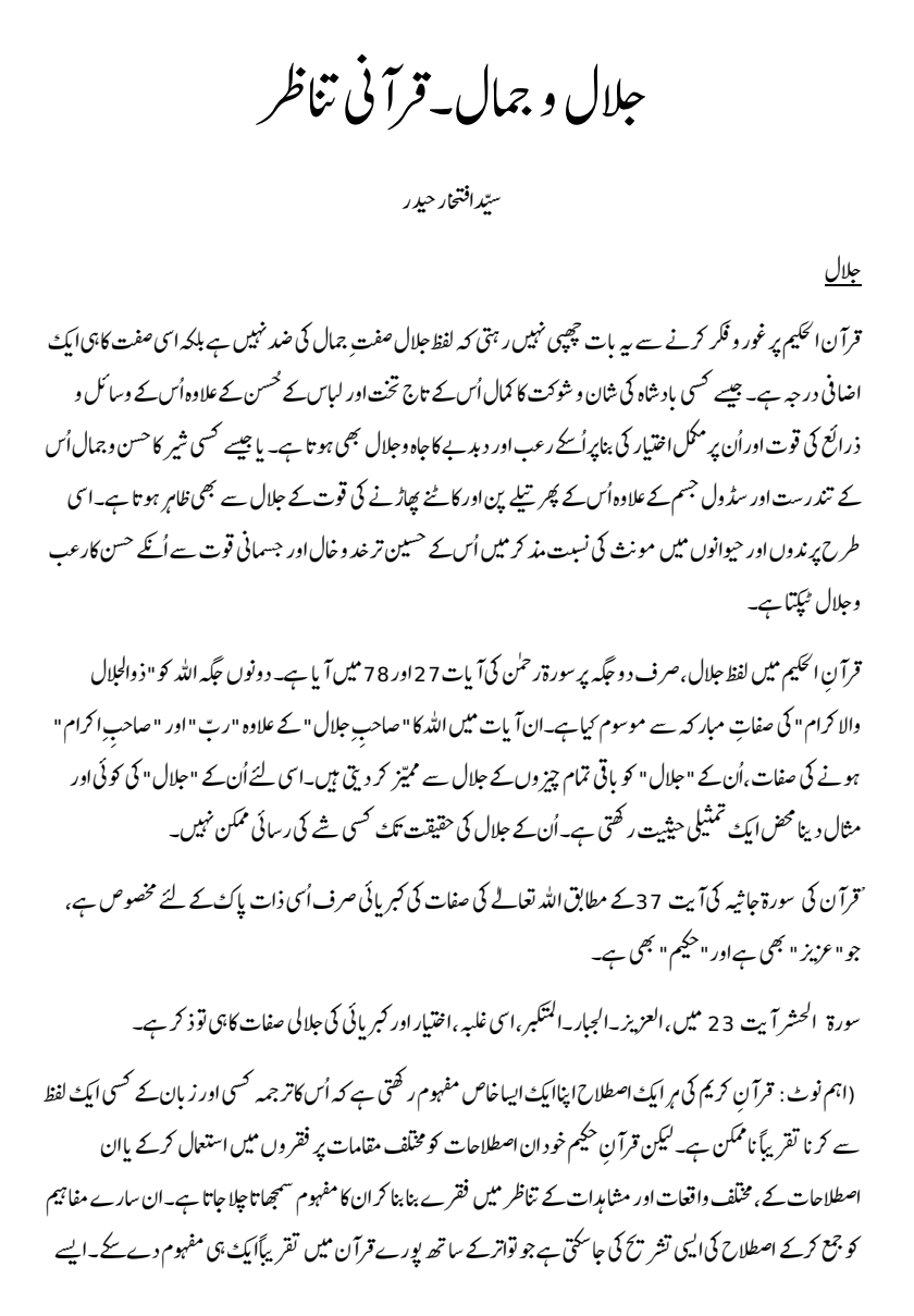 جلال  و  جمال ۔ قرآنی تناظر
