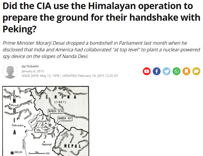 Did the CIA plant nuclear-powered spy device in the Himalayas in the 60s?