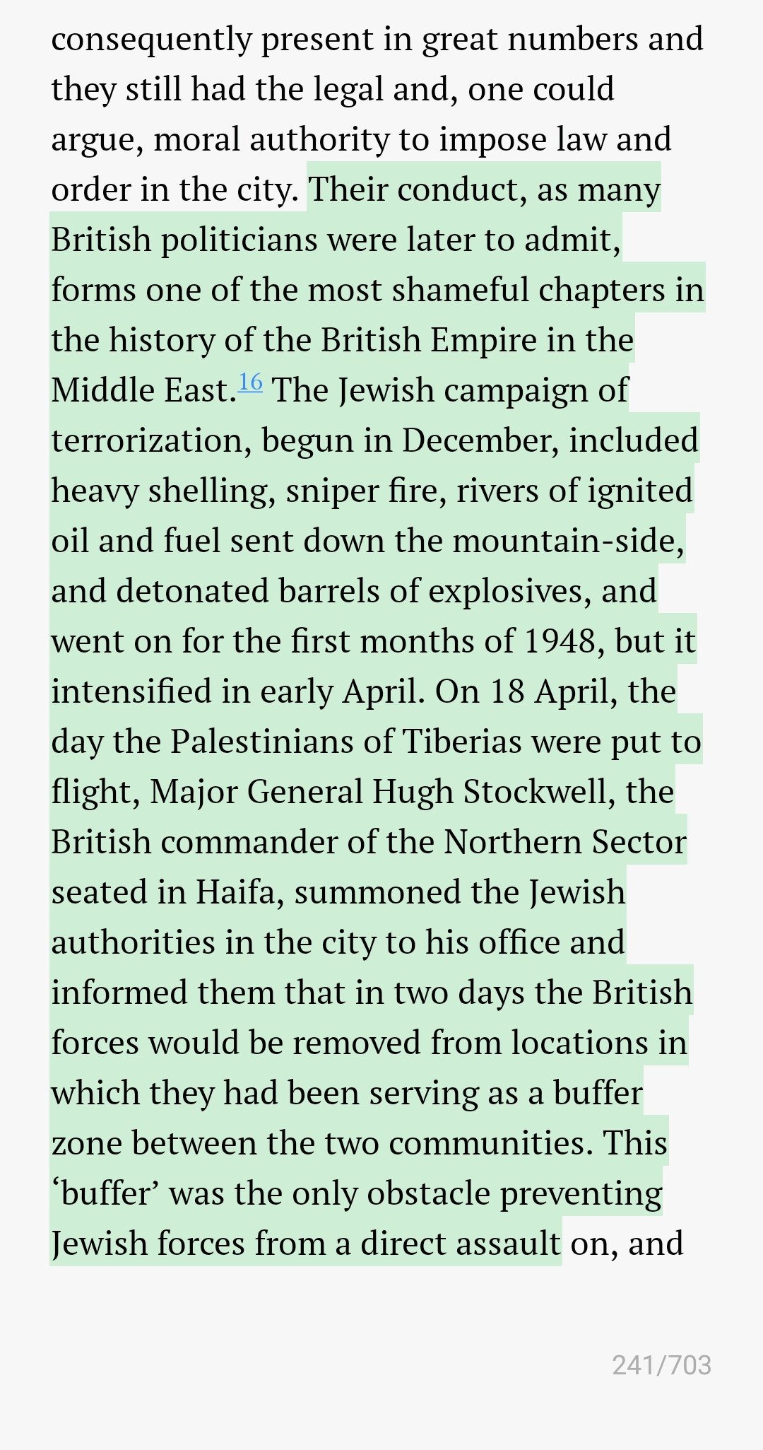 On 18 April, the day the Palestinians of Tiberias were put to flight, Major General Hugh Stockwell, the British commander of the Northern Sector seated in Haifa, told the Jewish authorities that British forces would be removed from locations where they had been serving in Haifa.