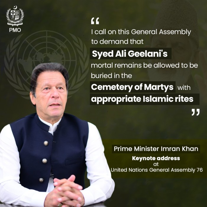 Lastly, Imran Khan’s appeal to the United Nations that “Syed Ali Geelani’s mortal remains be allowed to be buried in the ‘cemetery of martyrs’ with the appropriate Islamic rites” is the right step towards healing the pain not only of the family but the people of Kashmir as well.