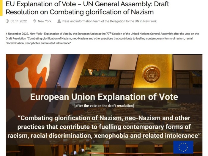 The EU’s Explanation For Rejecting Russia’s Anti-Nazi UN Resolution Isn’t Credible