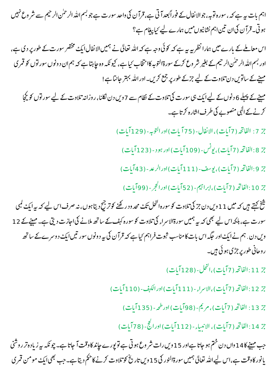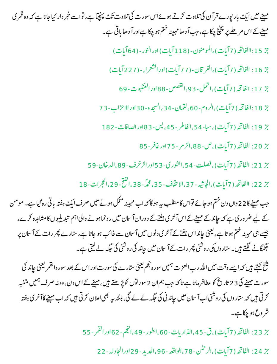قرآن کی تلاوت کا صحیح طریقہ اور سورتوں کی ایک ماہ میں صحیح تقسیم کا گریفک یہاں سے ڈاون لوڈ کریں