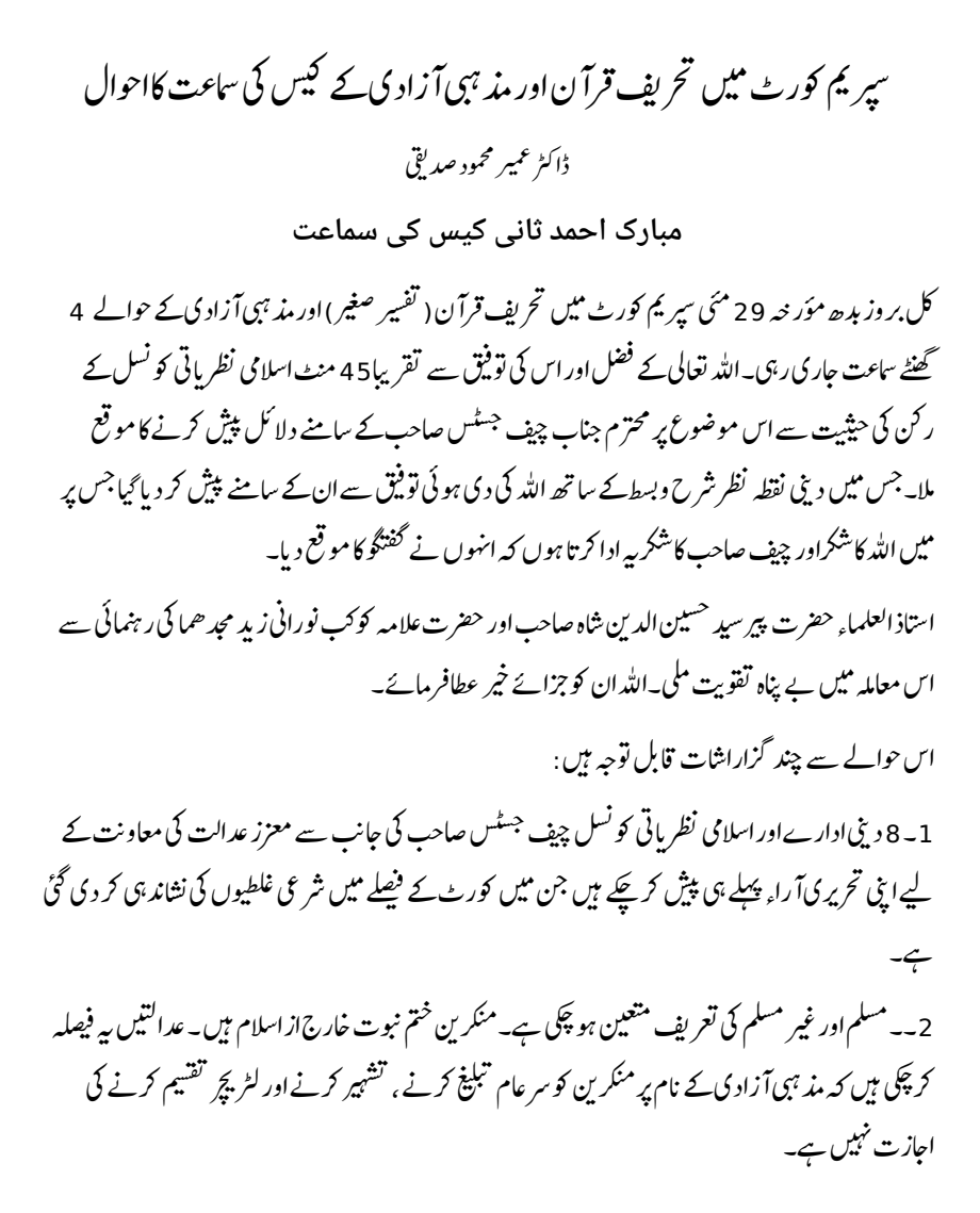 سپریم کورٹ میں تحریف قرآن اور مذہبی آزادی کے كیس كی سماعت كا احوال