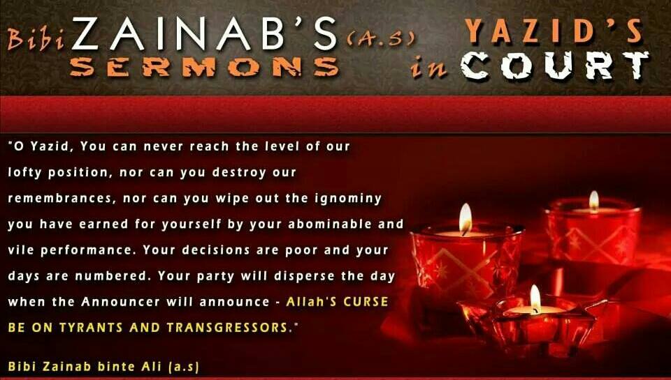 Sermon of Sayyeda Zaynab Bint-e-Ali (SA) when she along with other holy ladies and children of Ahlul-Bayt came from Karbala to the court of Yazid: