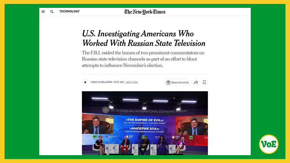 The New York Times (NYT) cited unnamed administration sources to report that the Justice Department has begun a “broad criminal investigation into Americans who have worked with Russia’s state television networks”. This follows the FBI’s raid of Scott Ritter’s house earlier this month and then Dimitri Simes’ Virginia estate shortly thereafter. Ritter is still in the US while Simes has been in Russia since October 2022. More of Russian media’s American affiliates might soon be raided according to the NYT’s report.