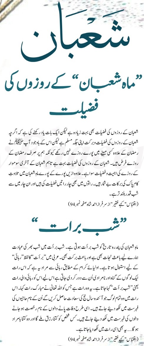 شعبان: خیر و بركت كا مہینہ – سید سرفراز احمد شاہ