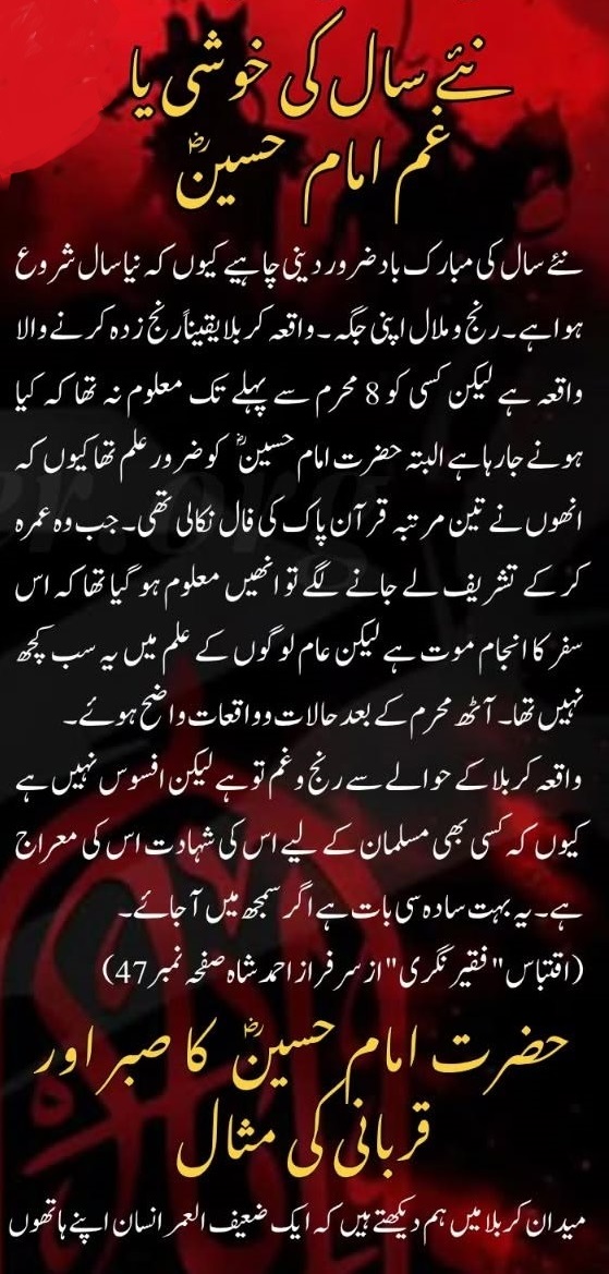 نئے سال کی خوشی یا غمِ امام حسینؓ – سید سرفراز احمد شاہ