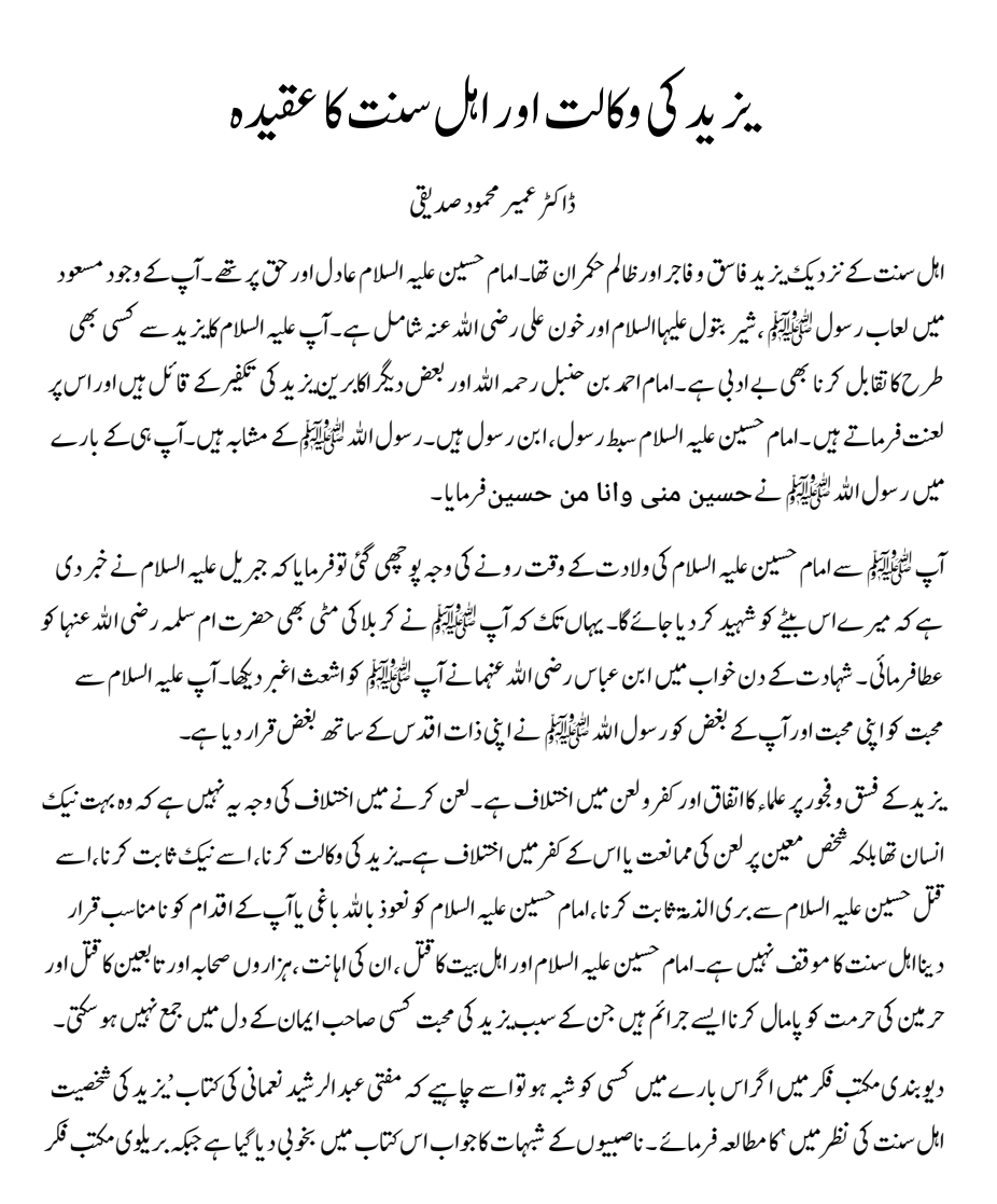 یزید کی وکالت اور اہل سنت کا عقیدہ