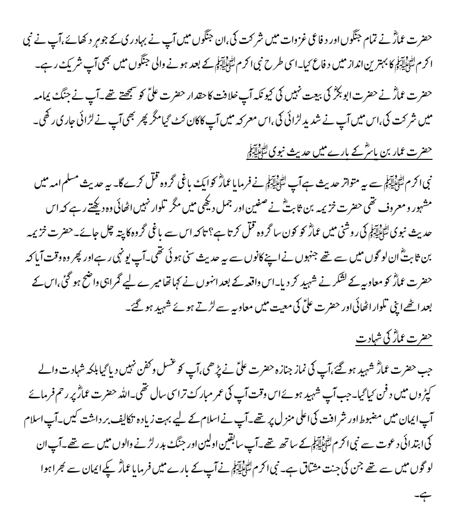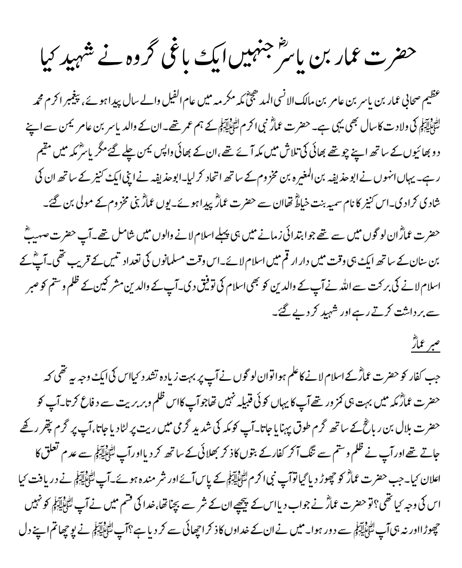 صحابیِ رسول ؐحضرت عمار بن یاسر ؓجنہیں ایک باغی گروہ نے شہید کیا