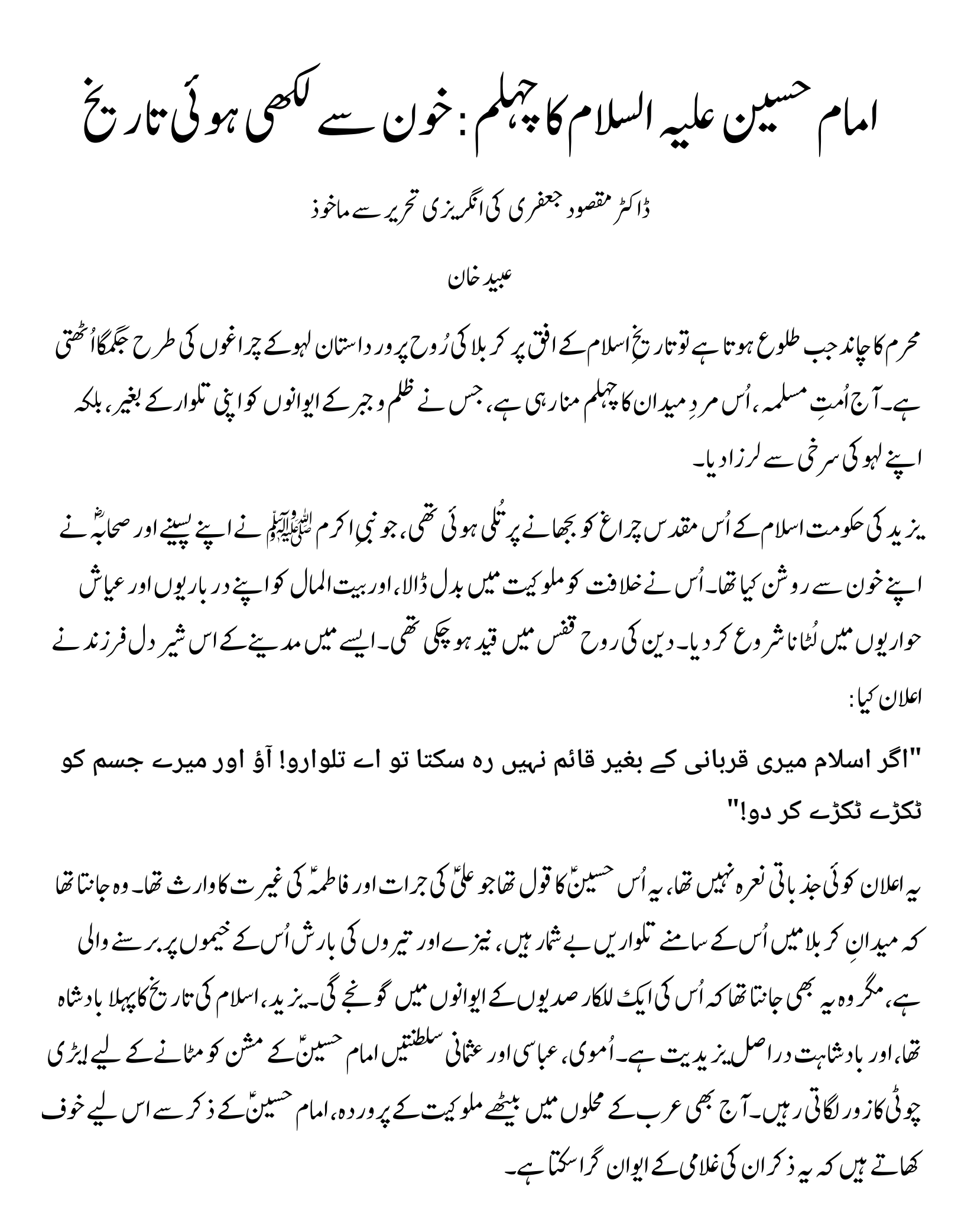 امام حسین علیہ السلام كا چہلم: خون سے لکھی ہوئی تاریخ