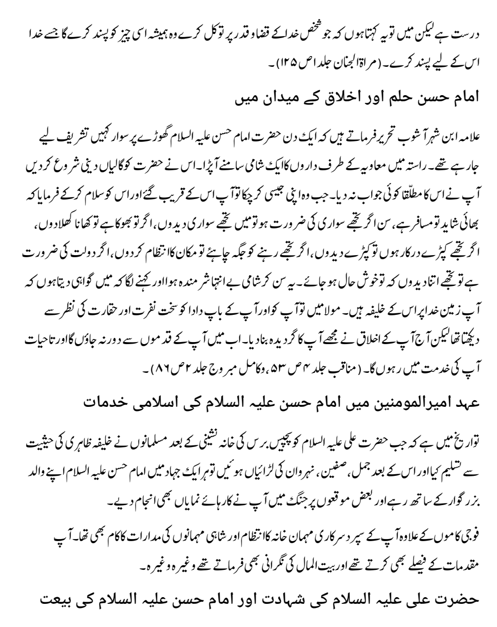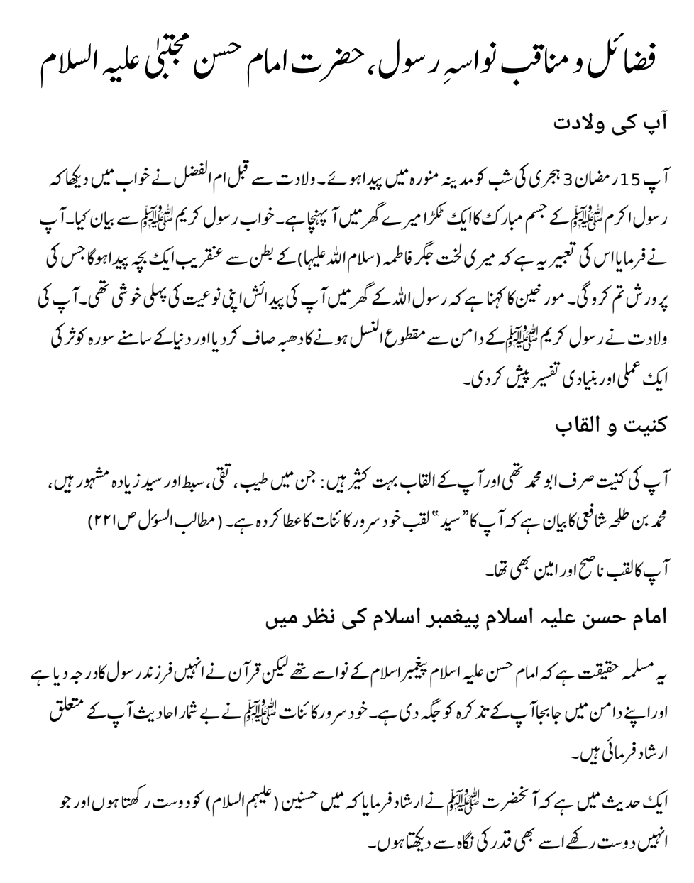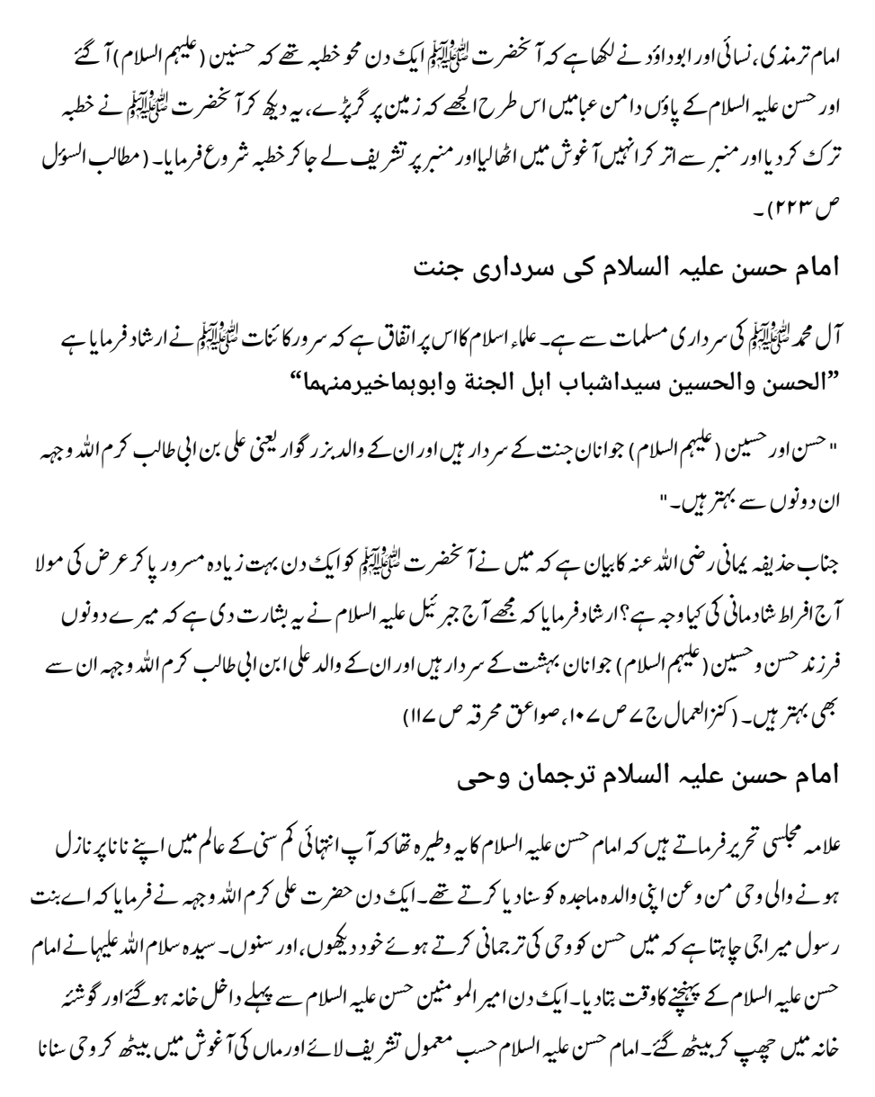 فضائل و مناقب نواسہِ رسول، حضرت امام حسن المجتبیٰ عليہ السلام