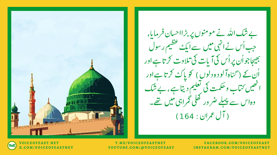میلاد النبی ﷺ – عید كا دن By Editor on 7th September 2025 • ( 0 ) میلاد النبی ﷺ – عید كا دن مفتی منیب الرحمٰن Discover more from Voice of East Subscribe to get the latest posts sent to your email. Type your email… Subscribe Share this:Tweet Click to share on Telegram (Opens in new window) Telegram Click to share on Mastodon (Opens in new window) Mastodon Click to share on Bluesky (Opens in new window) Bluesky Click to share on Threads (Opens in new window) Threads Click to share on Reddit (Opens in new window) Reddit Click to share on Nextdoor (Opens in new window) Nextdoor Pocket Click to share on WhatsApp (Opens in new window) WhatsApp Share on Tumblr Click to email a link to a friend (Opens in new window) Email Like Loading...‹ When An Expat Kashmiri Met A Pandit In Northern VirginiaPutin’s Master Plan For The Russian Arctic And Far East Will Speed Up The Global South’s Rise ›Categories: History, Ideology, IslamTags: Eid ul Adha, History, Islam, Muslim Ummah, Muslims, Quran, Spirituality, Urdu, مسلمان, اردو, اسلام, عید میلاد النبی Related Articles What Islam Really Says About Slavery, And Why Modern Critics Get It Wrong غازی انور پاشا کا آخری خط: عشق، ایمان اور شہادت کی گواہی فضائل و مناقب نواسہِ رسول، حضرت امام حسن المجتبیٰ عليہ السلام Commemorating Arbaeen, And The Purpose Of Imam Hussain’s Martyrdom