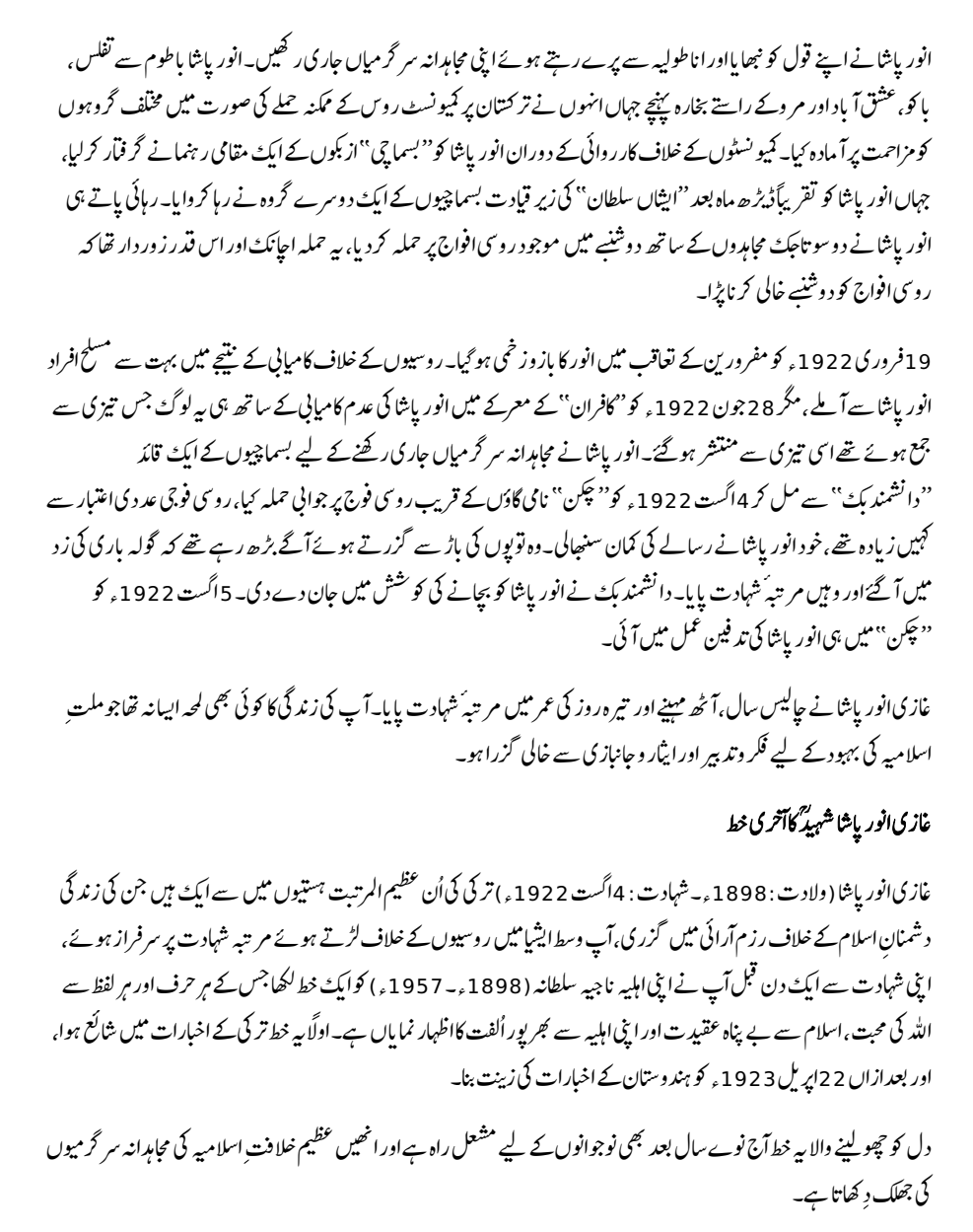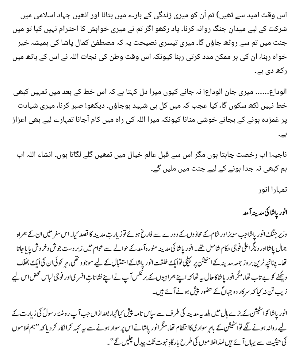 غازی انور پاشا کا آخری خط: عشق، ایمان اور شہادت کی گواہی