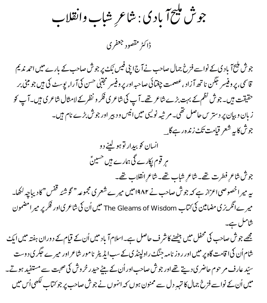 جوش ملیح آبادی: شاعر ِ شباب و انقلاب