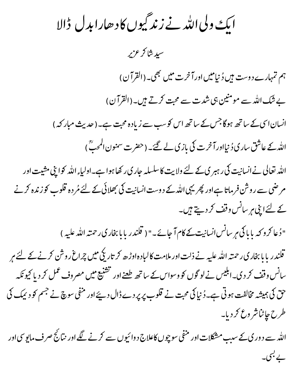 ایک ولی اللہ نے زندگیوں کا دھارا بدل ڈالا
