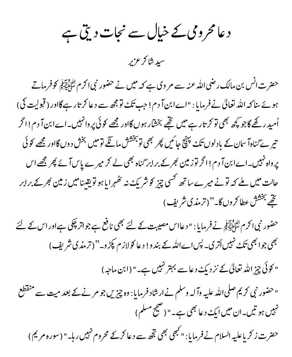 دعا محرومی کے خیال سے نجات دیتی ہے