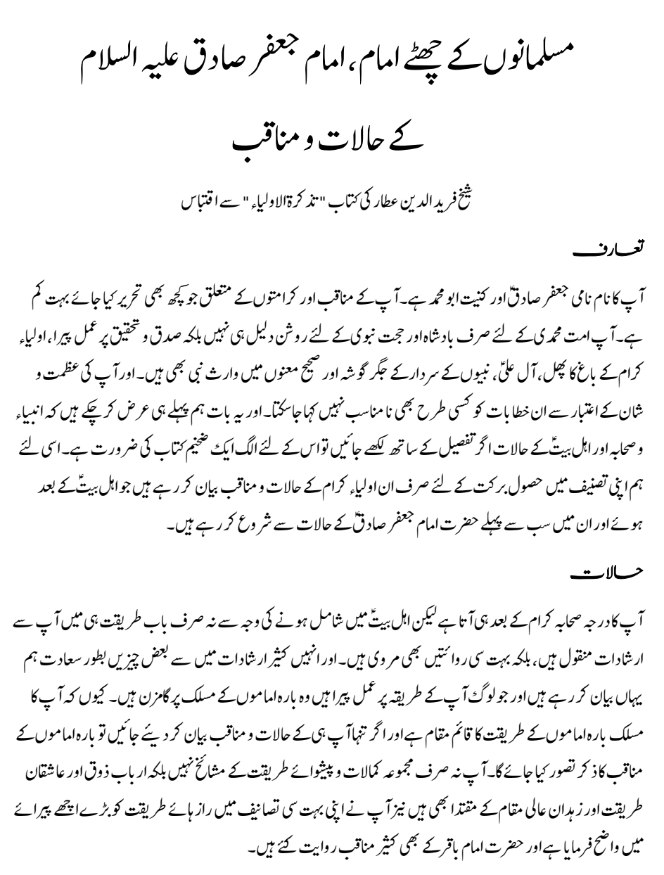 شیخ فرید الدین عطار کی کتاب ” تذکرۃ الاولیاء” سے اقتباس