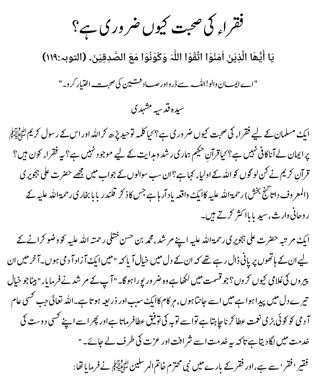 فقراء کی صحبت کیوں ضروری ہے؟